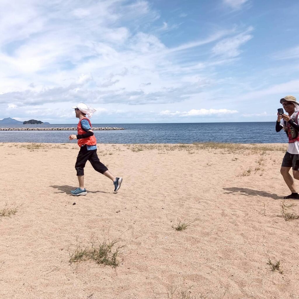 津田会場の主催により、てんとう虫会員全員が集まって、津田松原の砂浜をコースとするRUN&ウォーク大会’25を開催しました。