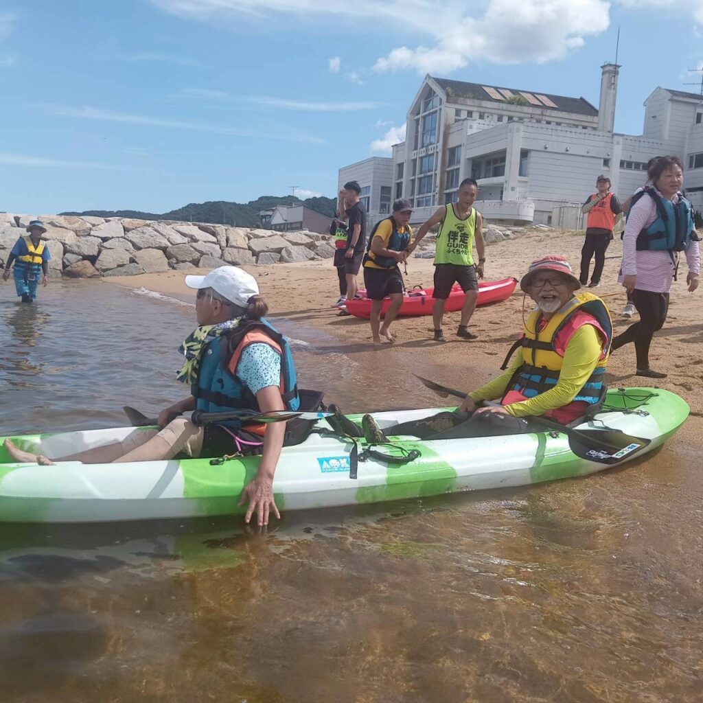 大会終了後、希望者は指導者の下にカヌーやサップの体験をしたり、砂浜でお弁当を食べたりして、楽しいひと時を過ごしました。